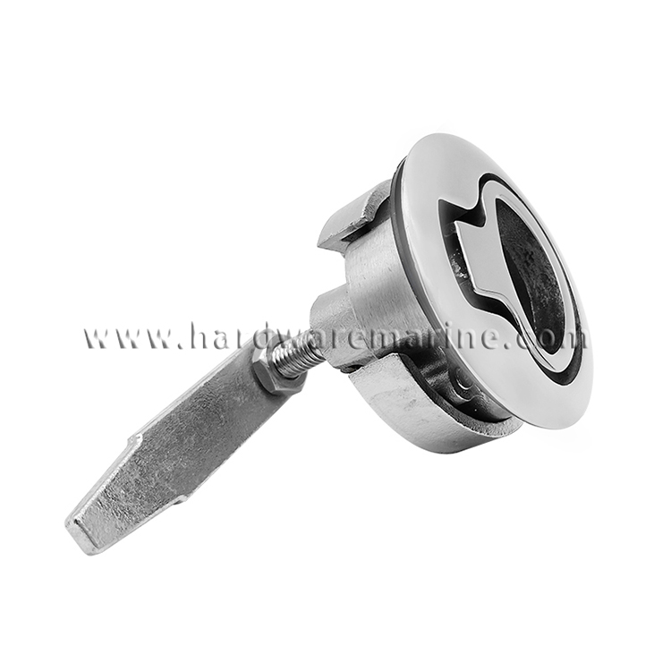Låsemekanisme:Udstyret med en sikker låsemekanisme, der sikkert låser og låser forskellige båd- eller yachtkomponenter såsom luger, døre eller opbevaringsrum. Denne funktion sikrer, at håndtaget forbliver i låst position, hvilket forhindrer utilsigtet åbning eller uautoriseret adgang.