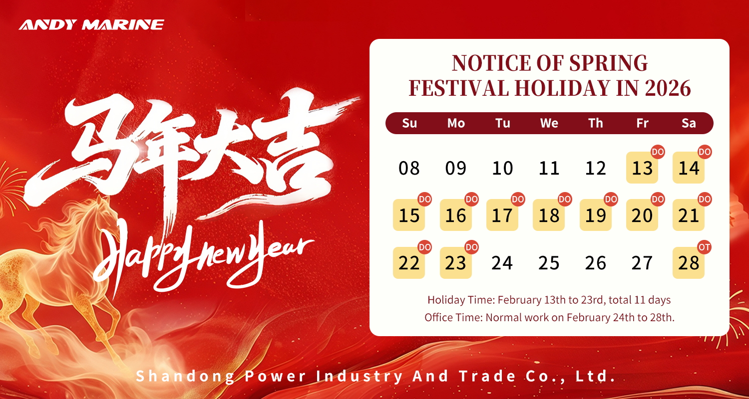 Som en professionel leverandør af marine hardware og tilbehør er Andy Marine forpligtet til at levere produkter af høj kvalitet og pålidelige tjenester. Når Forårsfesten nærmer sig, er arbejdet i forskellige afdelinger i virksomheden ved at gå ind i sin sidste fase, og ordre- og leveringssager inden nytår går også ind i den sidste fase for at sikre, at produkterne bliver leveret til kunderne rettidigt.